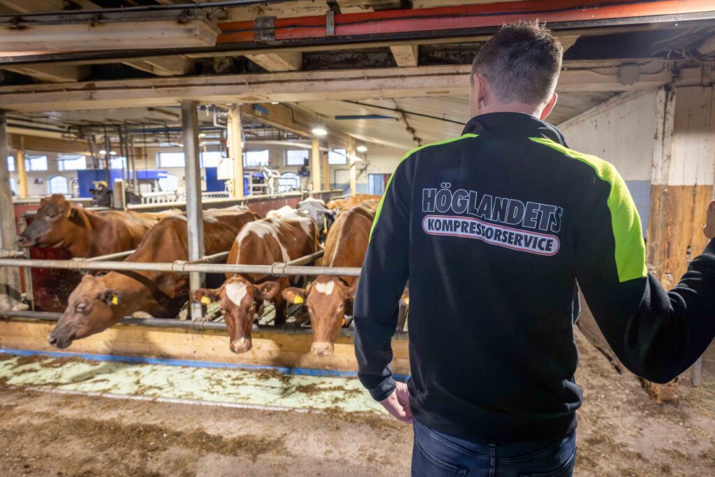 – Tryckluften är hjärtat i hela verksamheten. Mjölkrobotens funktioner går på luft, så en problemfri drift är absolut nödvändig, säger Kalle Sand, som ansvarar för lantbruksdelen i bolaget.